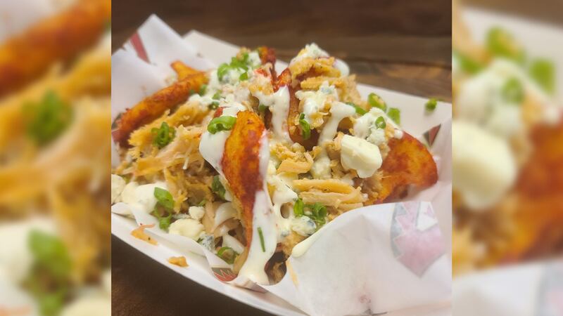 Do you love buffalo wings? If you do, you’ll have to try the Buffalo Chicken Sidewinder at Taste of Chase! Chef Tilder’s unique creation is an upgraded take on a classic buffalo chicken sandwich. The dish is topped with sidewinder potatoes, Flamin’ Hot Cheetos dust, smoked chicken, blue cheese, green onion and ranch dip.