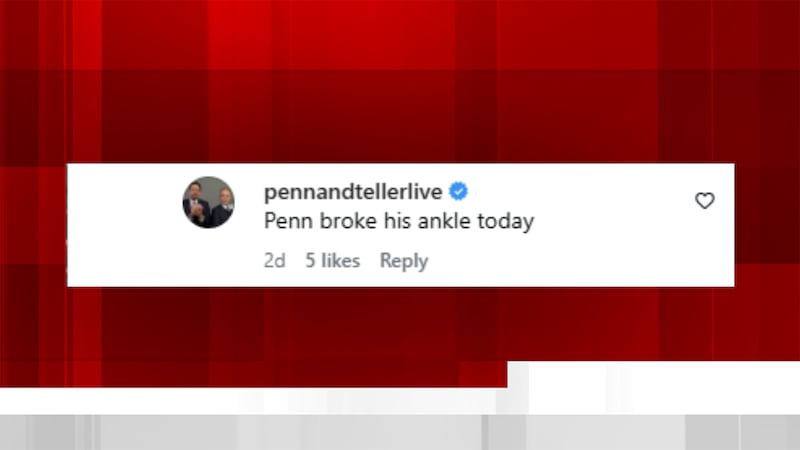 The beloved duo broke the news of Penn Jillette’s injury on Saturday in an Instagram comment, responding to a fan asking about canceled shows.